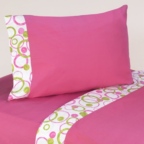 Sweet Jojo Designs Pink and Green Mod Circles 4pc Queen Sheet set is made to coordinate with their Full/Queen Bedding Sets. These sheets use solid hot pink 100% Cotton fabric with hot pink and lime green circles trim. High quality and easy machine washing will make this queen sheet set a must have for your room. Includes 1 fitted queen size sheet, 1 flat queen size sheet and 2 standard pillow cases.