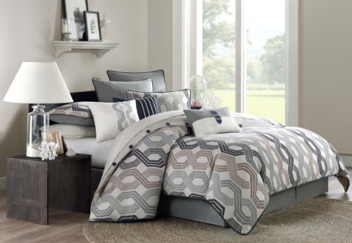 Hampton Hill Manhattan Polyester Jacquard 9-Piece Comforter Set, Queen, Multi Feature