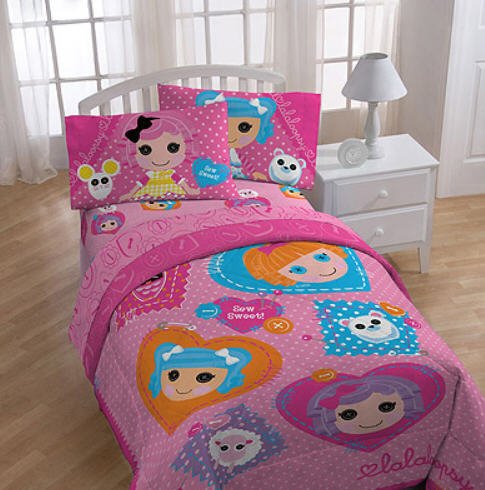 Finally! Your child can incorporate adorable "Sew-cute, Sew-sweet" Lalaloopsy into their bedroom decor! The vivid designs and patterns almost bring little Lalaloopsy to life with bold, bright colors. Not only does this cuddly comforter feature adorable design, but the super-soft microfiber makes it "Sew-comfy" for bedtime comfort. The set includes: 1- Twin Comforter, 1- Flat Sheet, 1- Fitted Sheet & 1- Pillowcase.