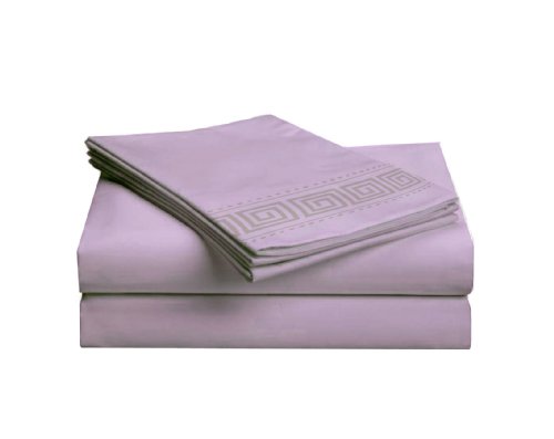 AEGEAN 70 GSM Microfiber Modern Sheet Set with Greek Key Embroidery Greek Key Embroidery KING sheet set color lavander, 6 case pack.