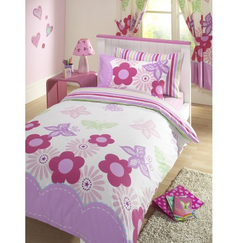 Read more GIRLS REVERSIBLE SINGLE DUVET QUILT COVER BEDDING SET PINK LILAC SUNNY DAYS NEW