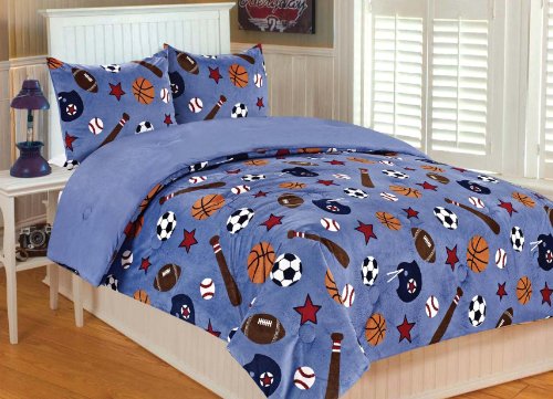 Sports Printed Micro plush 3 piece bedding set comes with two 20x26 shams. Soft plush fabric In bright and modern color ways will enhance your bedroom décor.