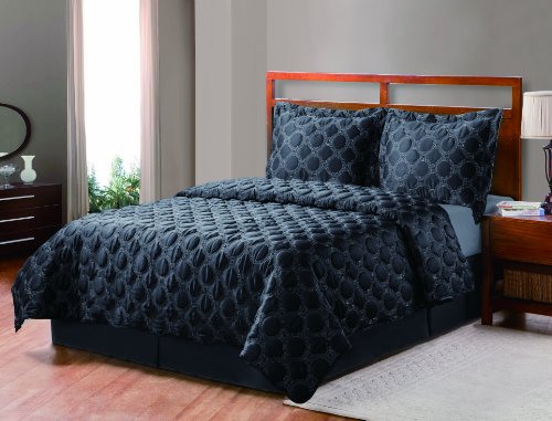 Read more Victoria Classics SAC-3QT-QUEN-IN-KS Sacramento 3-Piece Quilt Set, Black/Silver