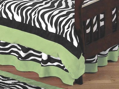 Lime Funky Zebra Bed Skirt for Toddler Bedding Sets by Sweet Jojo Designs Feature