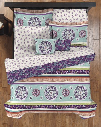 Read more Sanders Home Collection Henna Reversible 10-Piece Bed in a Bag Bedding Set with Pillows, Full Size, Teal