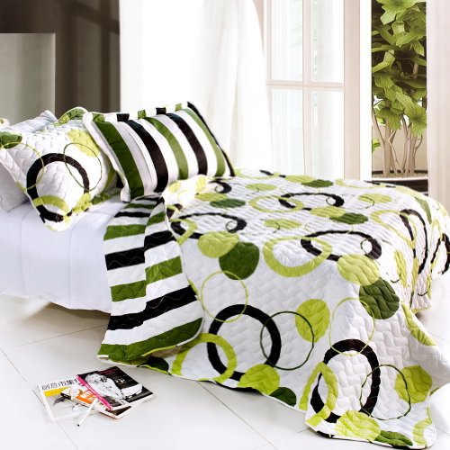 Read more [Artistic Green] Cotton 3PC Vermicelli-Quilted Circle Printed Quilt Set (Full/Queen Size)