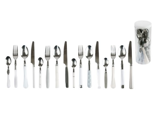 Perfect for summer barbecues, festive parties or everyday use. This stainless steel cutlery set features white and grey plastic handles in assorted patterns and shapes. Sixteen piece set includes 4 each of knives, forks, dinner spoons and teaspoons. Dishwasher safe. Present Time is a brand factory specializing in gifts and home decoration items. Present Time's mission is to allow contemporary design to add fun and a personal touch to life.